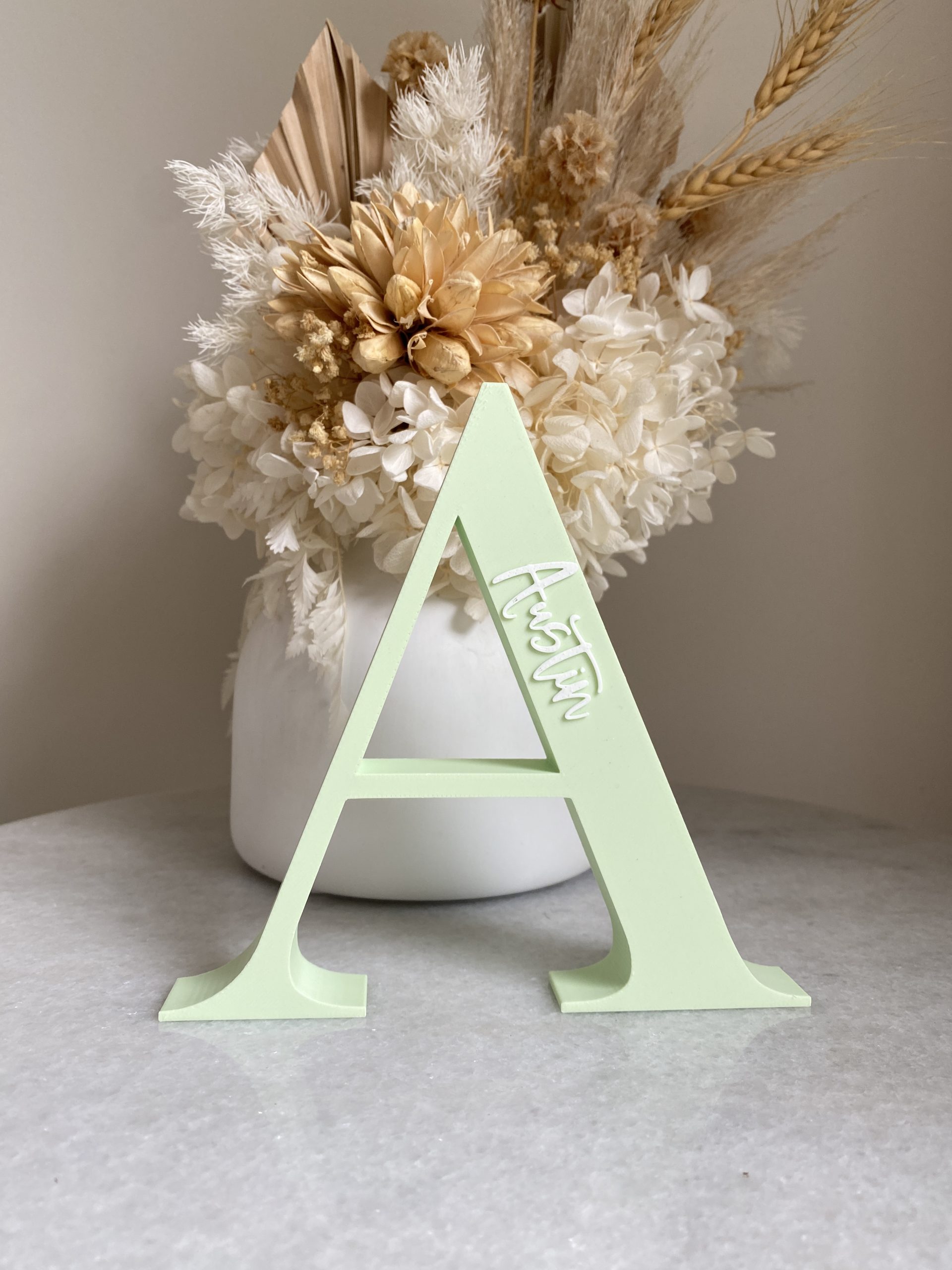 Our ‘3D Block Letters’ are the perfect addition to your baby’s room. You expecting mothers and parents can choose to get a single letter, your baby’s initials, spell your little ones whole name or choose our personal favourite a block letter with the added detail of your baby’s name written in cursive text on it; the choice is yours! Our 3D block letters are a completely unique personalised piece of nursery décor. A lovely keepsake to enjoy for years to come.