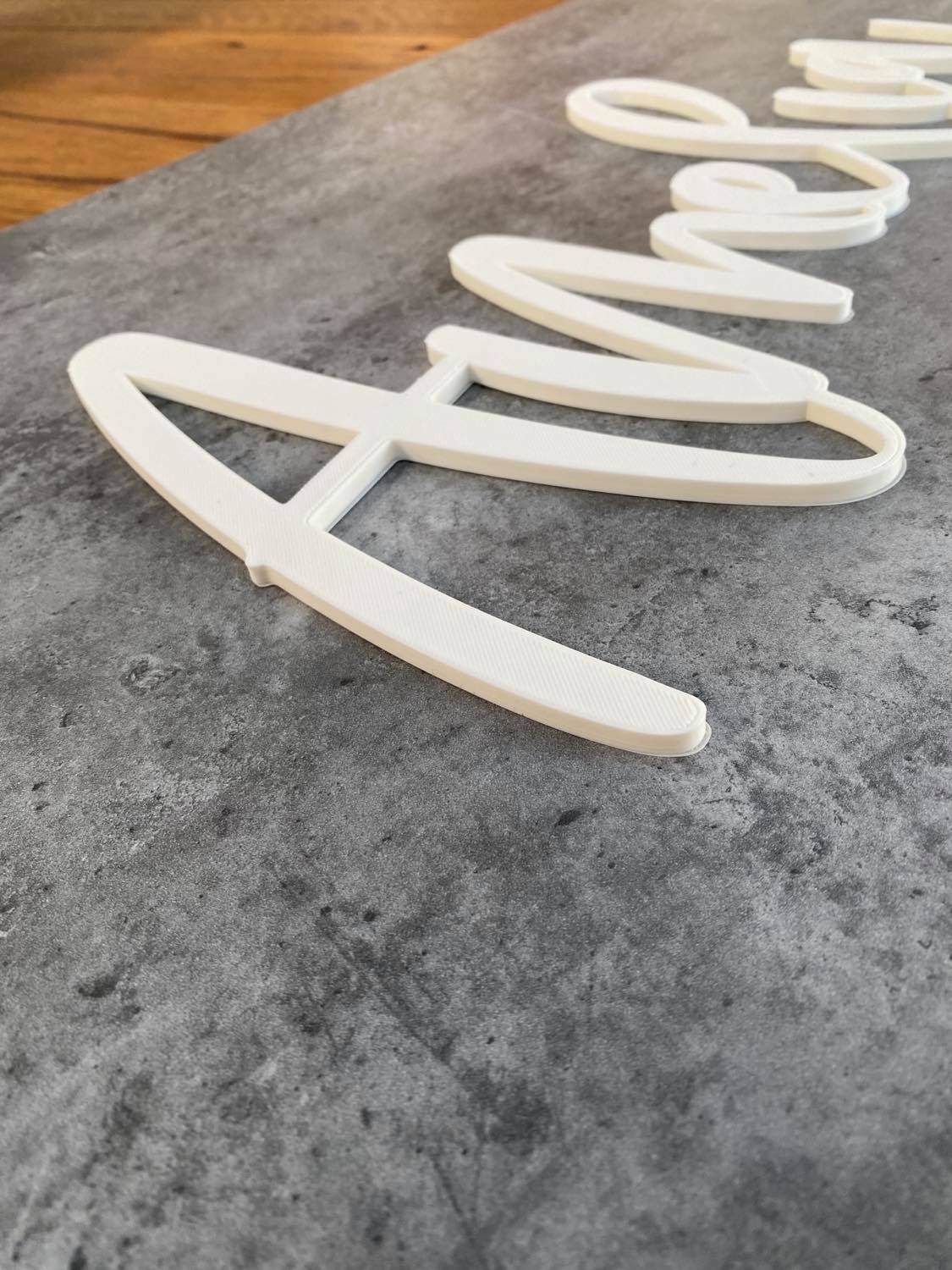 Each 3D Name Wall Decal has a textured finish unique to 3D printing. The 3D printing process minimises waste by printing and using only the material needed for each product, making it a sustainable and environmentally conscious choice. This plaque is made locally with love in Melbourne, Australia. Shipping available internationally.