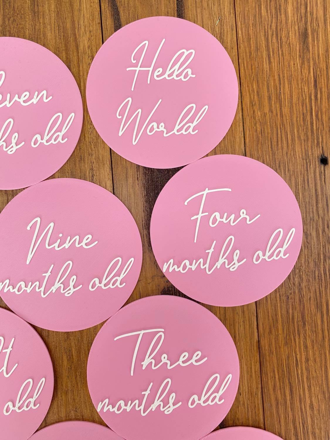 Our ‘Milestone plaque set Katalia’ allows you expecting mothers and fathers to capture your little ones month to month. You can watch your baby grow and change over the first year of their lives. A lovely keepsake to enjoy for years to come.
