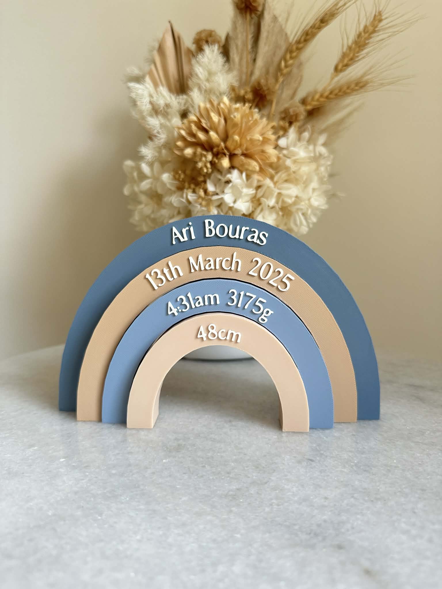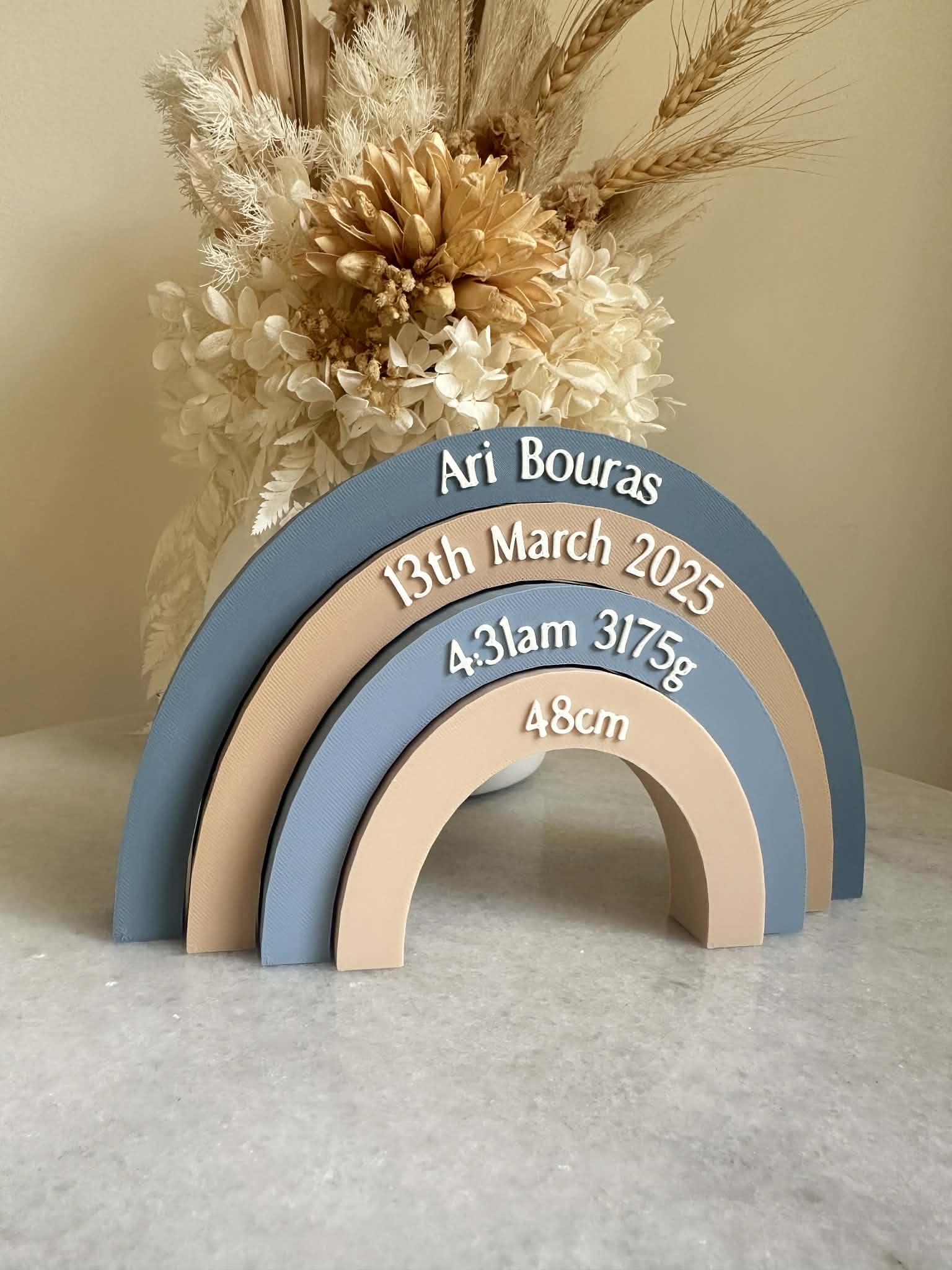 Our 3D Rainbows are a completely unique personalised piece of nursery décor. They can be used to display your little ones birth details, just their name or have your whole family’s names on them. A lovely keepsake to enjoy for years to come.