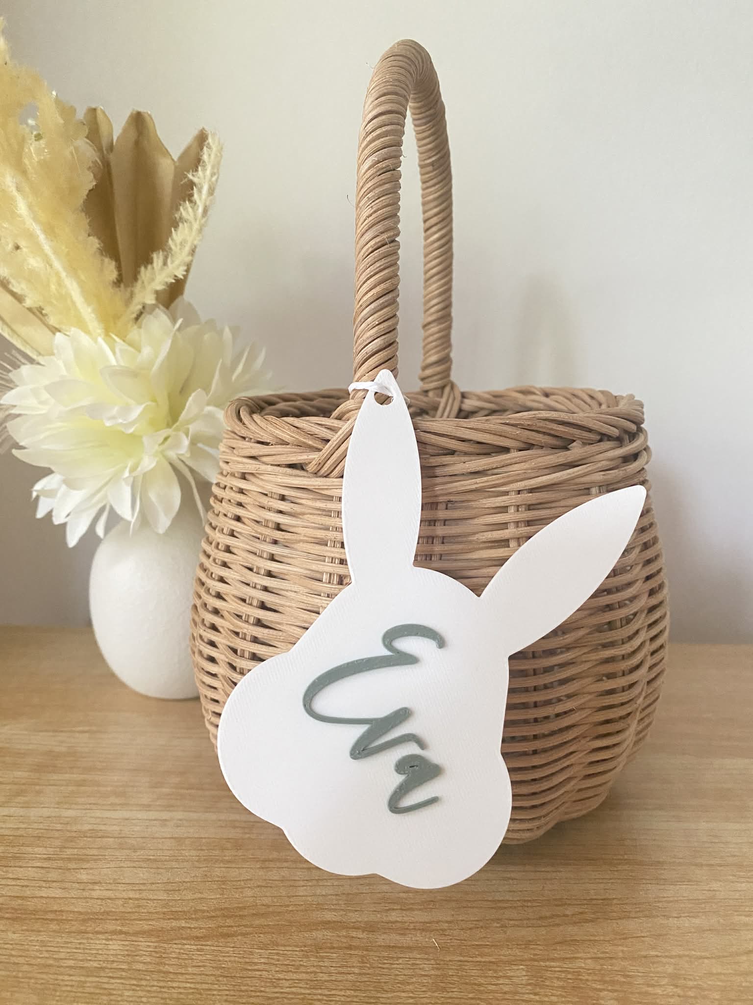 Our ‘Easter Bunny Basket Tag’ are the perfect way to personalise your little ones Easter basket! Have the most stylish Easter basket this Easter morning on your Easter egg hunt! A great keepsake for mothers and fathers, which can be reused for many Easters to come. This basket tag can be used as décor for your baby’s nursery giving the room a personalised festive Easter touch. String not included.