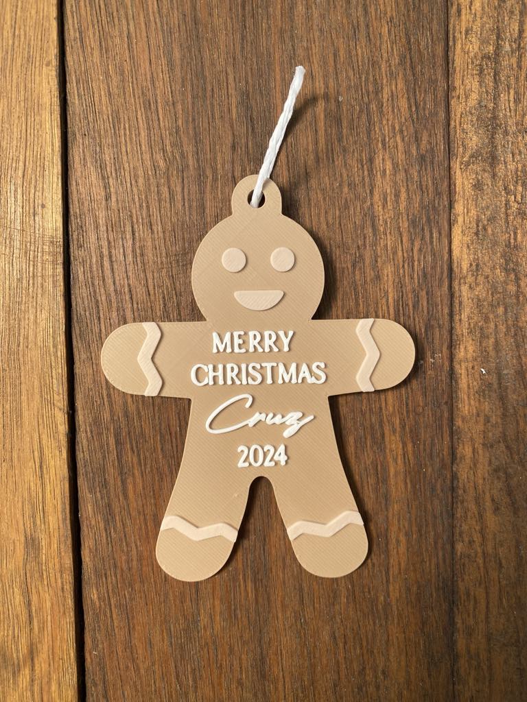 Our ‘Gingerbread Man Christmas Decoration’ is the perfect personalised addition to your Christmas tree this year! A great way for mothers, fathers and family’s to remember their little one’s Christmas this year. Our Gingerbread Man Christmas Decorations allows you to add your baby’s name and the choice to add a festive colours. Available in two sizes.