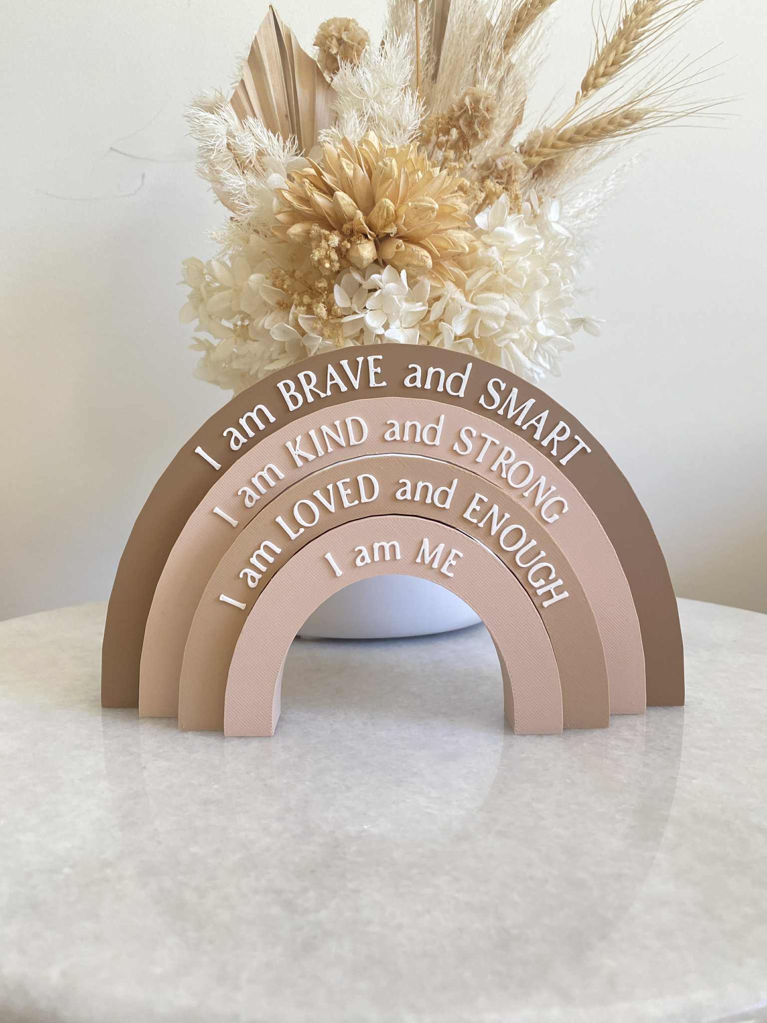 Each arch is light weight and has a textured finish unique to 3D printing. The 3D printing process minimises waste by printing and using only the material needed for each product, making it a sustainable and environmentally conscious choice. These rainbows are made locally with love in Melbourne, Australia.