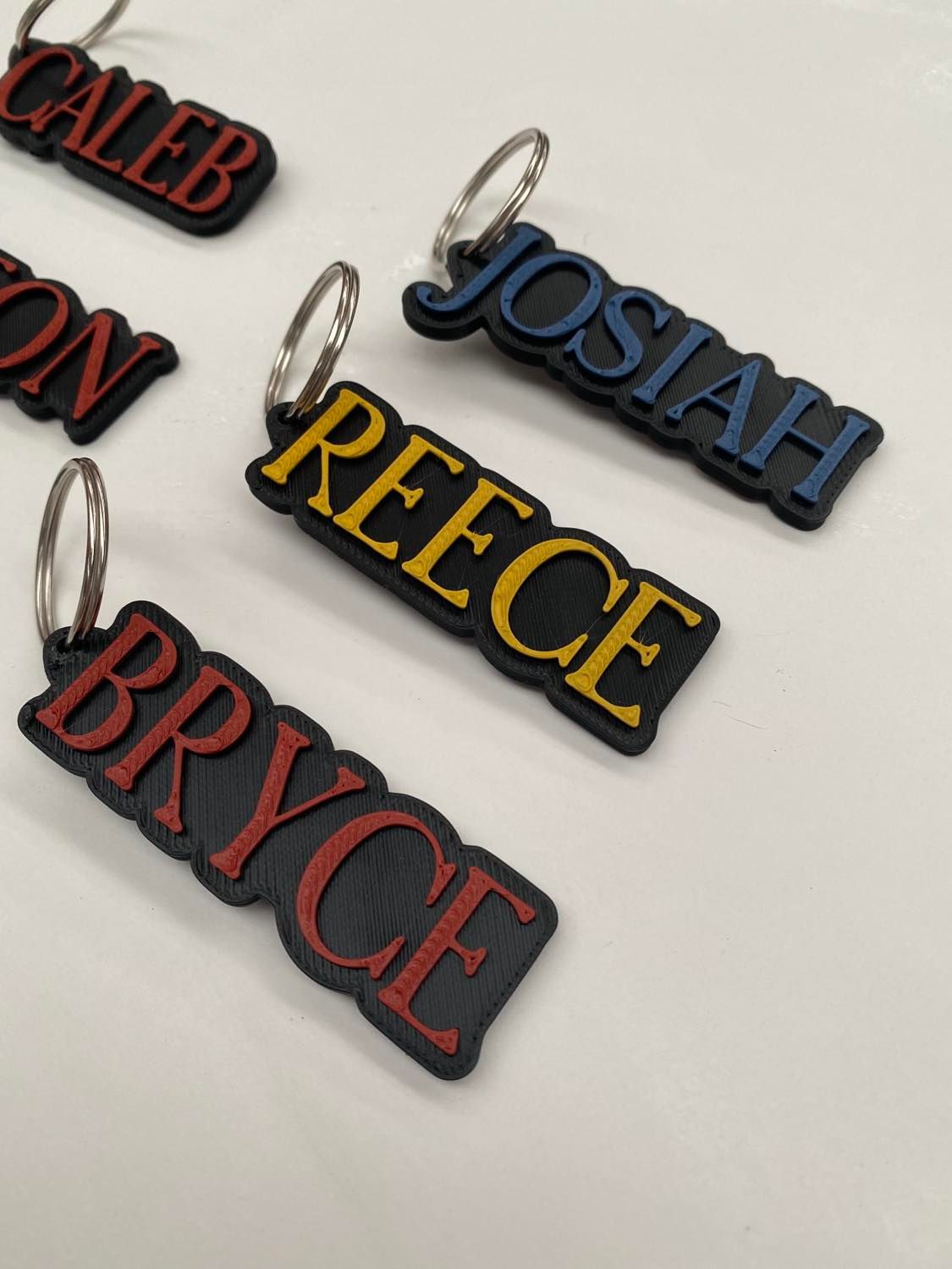 • Size: Width of each keychain is 2.2cm. Length dependant on the amount of letters. 3mm base height with 1mm writing height.