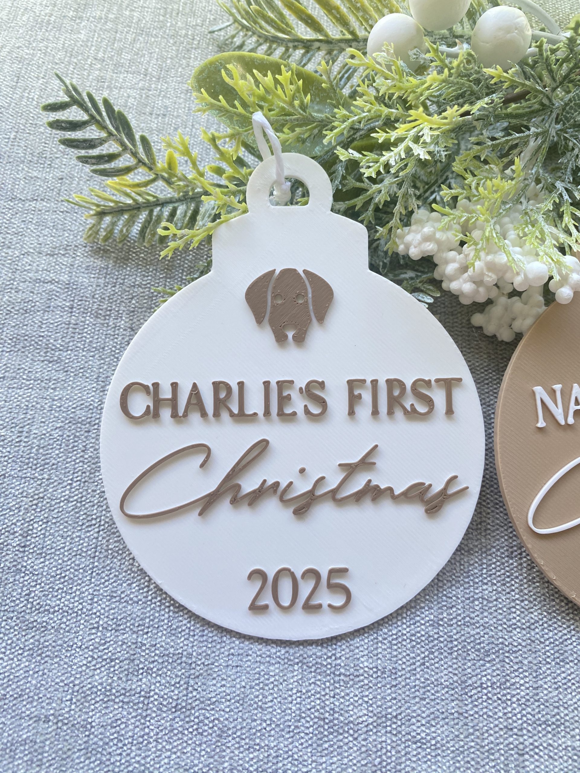 Our ‘Pet’s First Christmas Decoration’ is the perfect personalised addition to your Christmas tree this year! A great way for fur mothers, fathers and family’s to remember their little fluffy friend’s first Christmas. Our Pet’s First Christmas Decorations allows you to add your fur baby’s name. Available in two sizes.