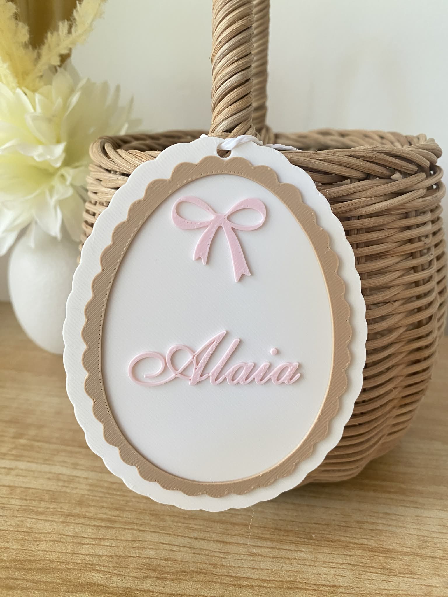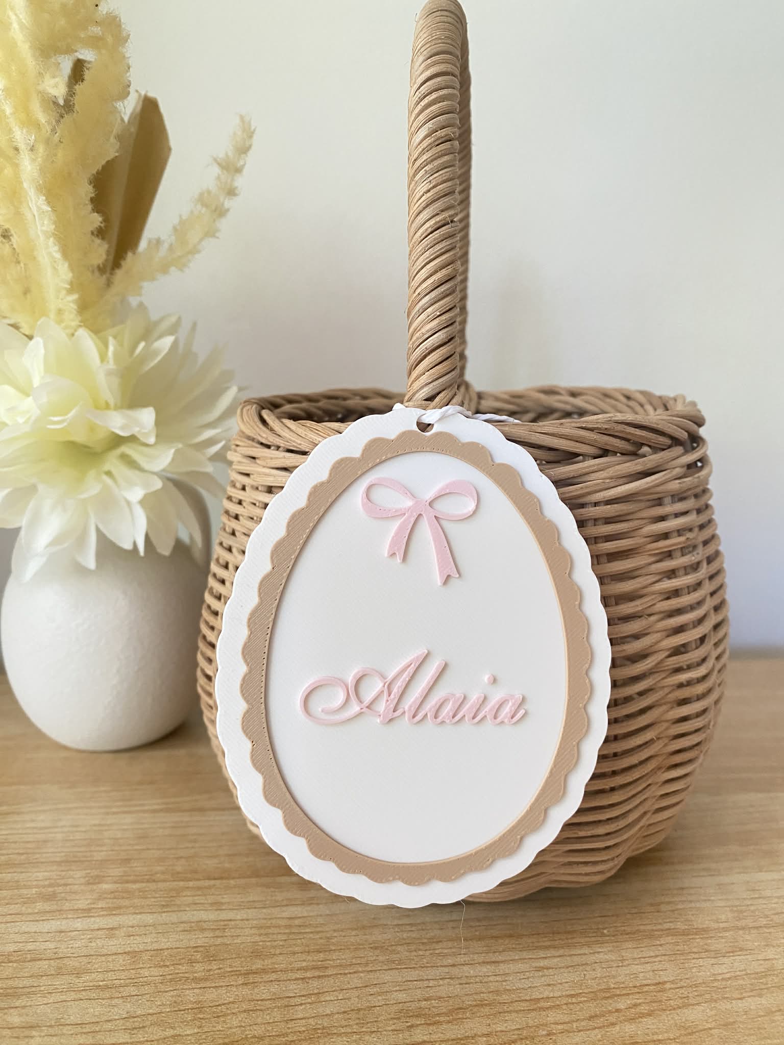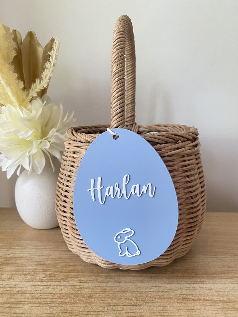 Our ‘Pink Vintage Egg Basket Tag’ are the perfect way to personalise your little ones Easter basket! Have the most stylish Easter basket this Easter morning on your Easter egg hunt! A great keepsake for mothers and fathers, which can be reused for many Easters to come. This basket tag can be used as décor for your baby’s nursery giving the room a personalised festive Easter touch. String not included.